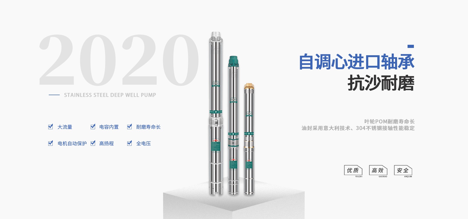 公司始終站在深井泵行業(yè)的前端位置,科研力量、產(chǎn)品和設(shè)備技術(shù)水平均達(dá)到國內(nèi)優(yōu)質(zhì)水平,公司始終堅(jiān)持走科技興企、自主創(chuàng)新的企業(yè)發(fā)展之路,產(chǎn)品不斷推陳出新,可廣泛應(yīng)用于農(nóng)業(yè)灌溉、生活用水、循環(huán)供暖、污水處理、市政供水、石油化工、冶金礦山等領(lǐng)域。